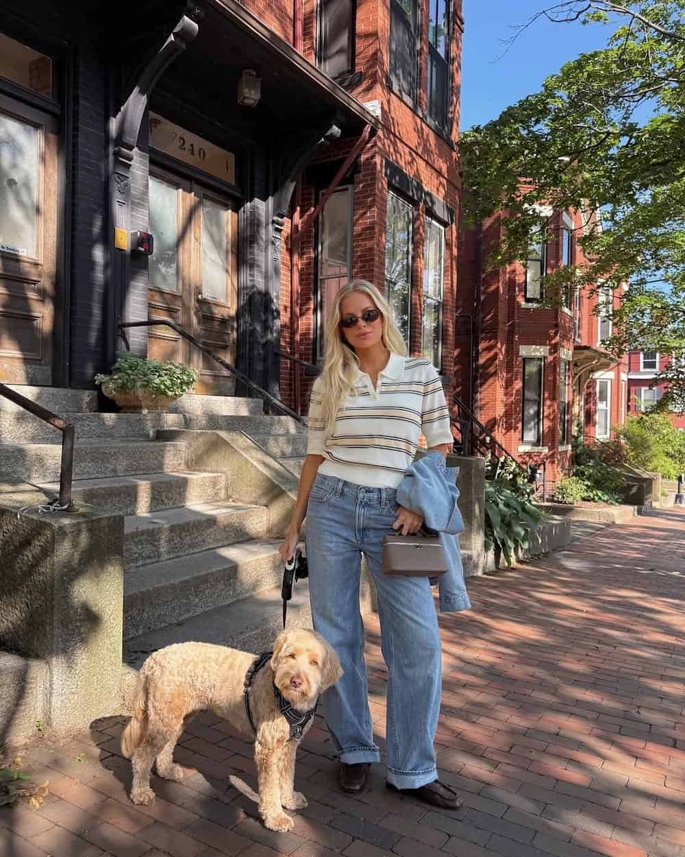 A striped polo top feels preppy and fresh for spring, and I love this paired with simple leather loafers for an effortless old-money vibe. With light blue wide-leg jeans sandwiched between, this look has the perfect casual-chic aesthetic.