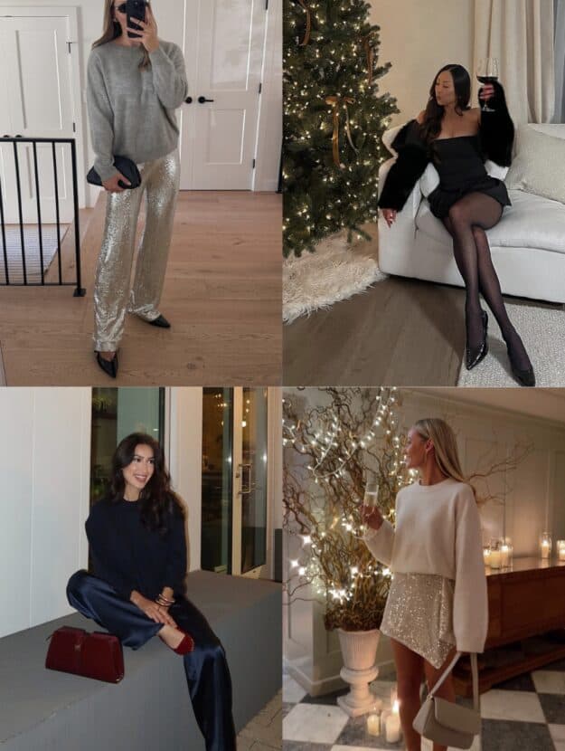 This year, holiday fashion is all about sparkle, drama, and statement-making details, but still with a touch of comfort. On TikTok and IG, we’re seeing sequins styled for brunch, oversized bows on outerwear, and knit sets that feel as chic as they are cozy.