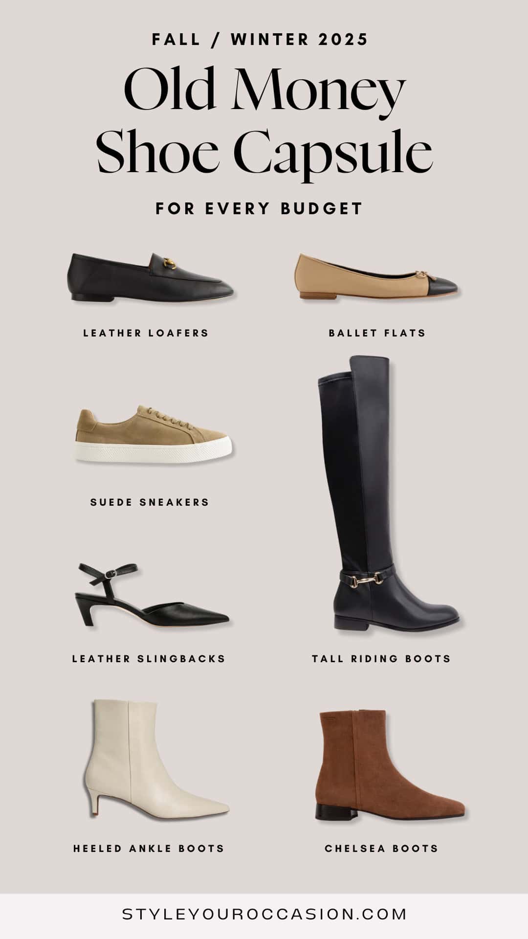 Do you love the ‘old money’ vibe or look? I’m sharing which shoes to have in your wardrobe this fall and winter for that quiet luxury aesthetic, no matter your budget!