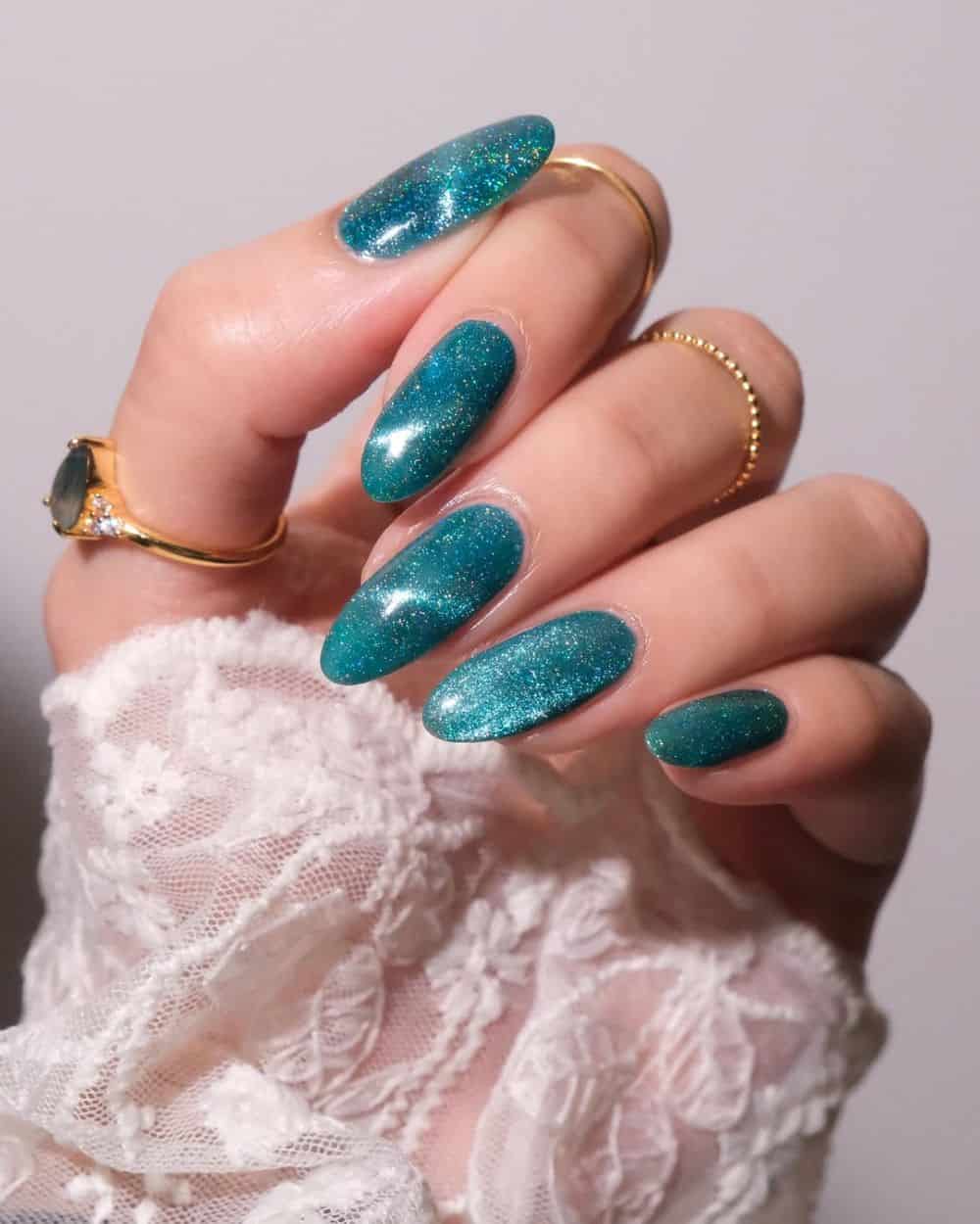 Teal is the ultimate summer tone, evoking thoughts of dreamy tropical settings and cool, salty waters. Who What Wear spoke with beauty expert and Gel Bottle Founder Daisy Kalnina, who called teal the “standout hero for 2026.” She also noted that you can give this color a modern update via “velvet or magnetic finishes.”