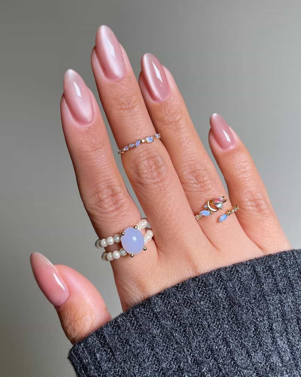 These nails are a bit more opaque than jelly nails, but not completely solid. The look by Anahi on the left is the perfect design to show to your nail tech if you want to rock this trend. Or, if you want to liven up the look, add a subtle shimmer like @thecolornook, or go for a beautiful cat-eye topcoat as @sansungnails did!