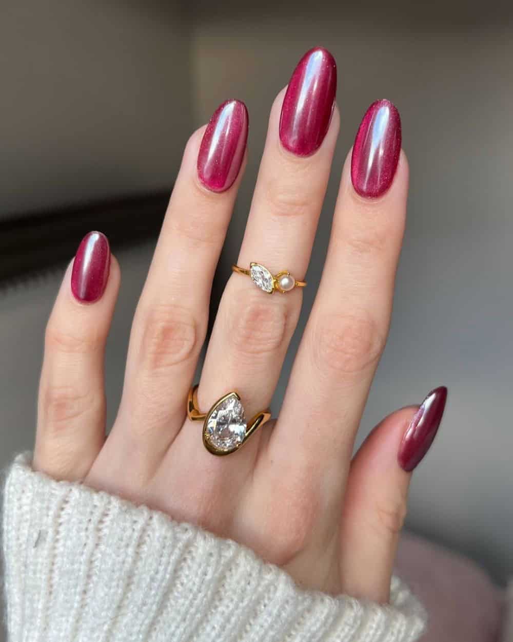 I love this color paired with a cat-eye finish, and you can take inspiration for that from the middle design by @brilliant.nails.lounge. However, this shade is so versatile, and can be used in refined manicures for formal events or in seasonal designs for something fun and vibrant.