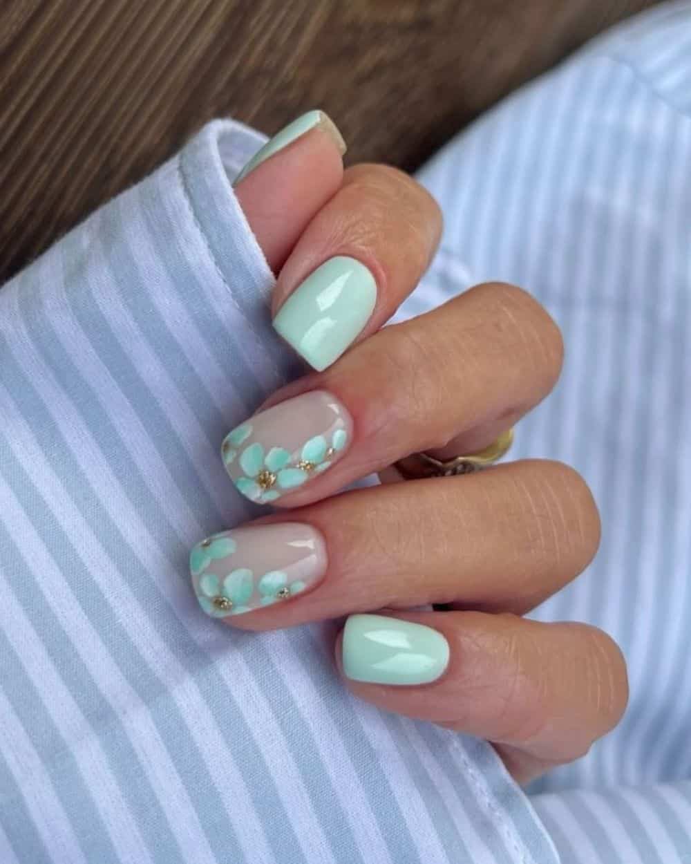 This shade is cool and refreshing, making it perfect for warm May days. Whether you go for a simple, solid mint manicure or add a modern chrome top, this color is versatile enough to take you from one occasion to the next this season. And if you want to add extra springtime charm, pair this hue with delicate florals (like the design by @g_kaminska) or simple polka dots.