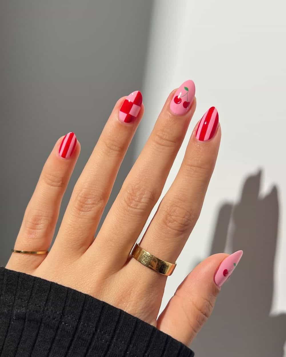 Multicolor nails will be a popular design choice in spring 2026, and for May in particular, pink and red are the combo we’ll be seeing (according to Who What Wear). “You might think light pink and red together would read way too sweet, but the pop of cherry actually helps ground the overall palette.”