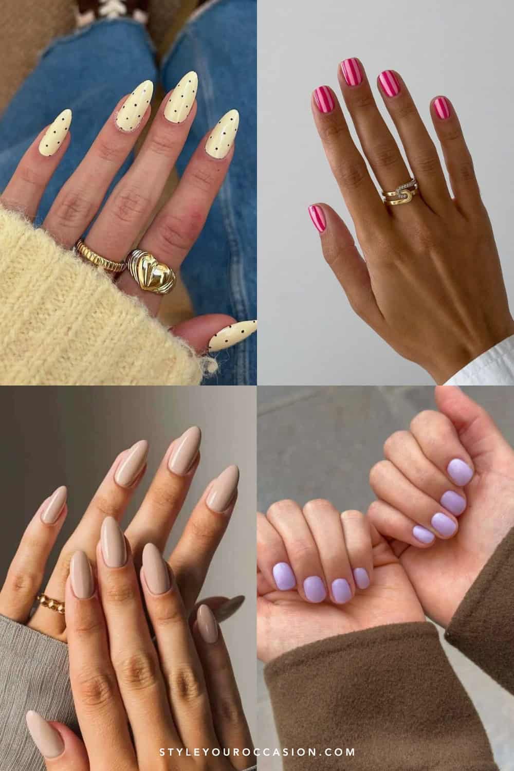 This color feels dreamy and whimsical, and it couldn’t be a better choice for a final spring look! Lindsay also noted “that the purple colour trend is currently huge in fashion, too.“ So, it’s safe to say this gorgeous pastel is perfect for May, and light purple nails are a chic accessory this season.