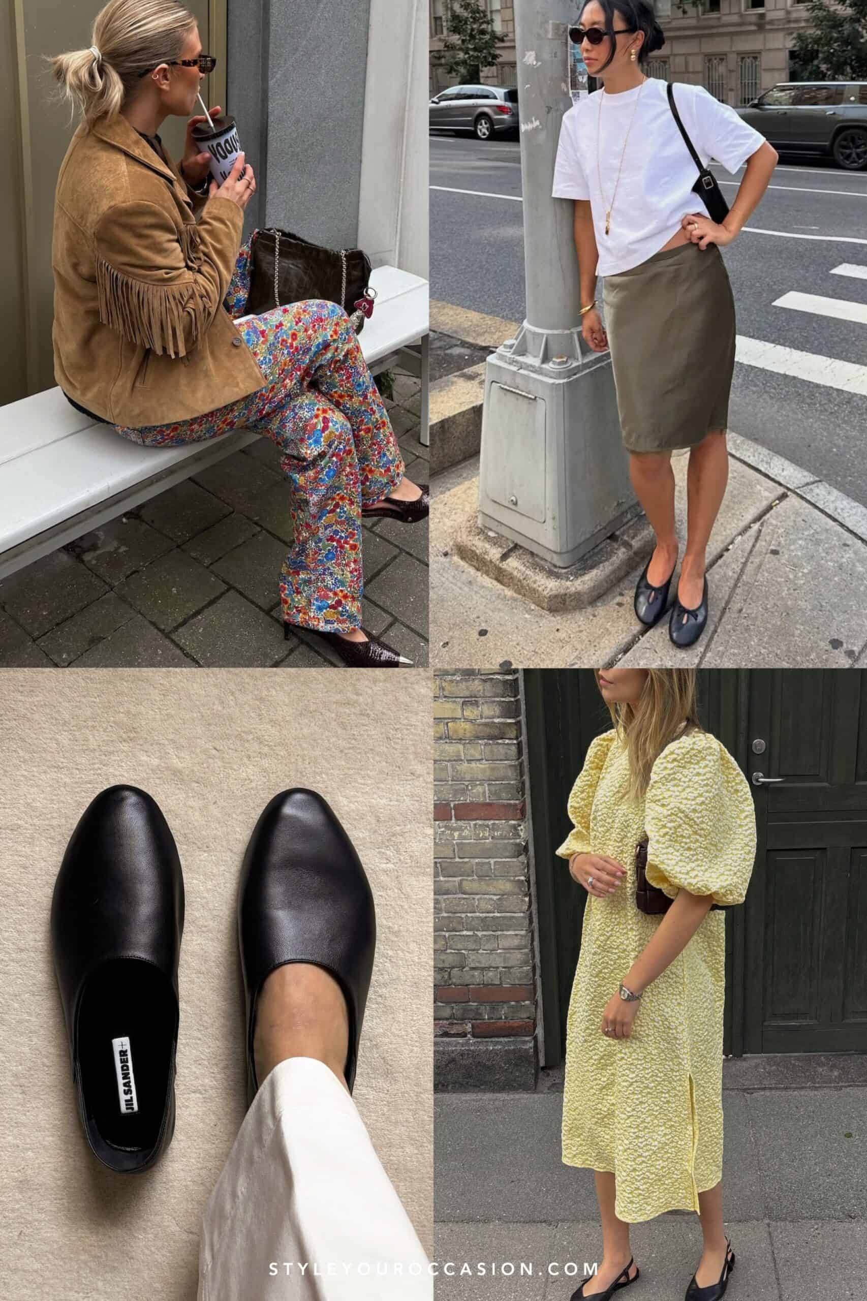 If you want to add these shoes to your rotation, consider the Gallery Flat by Everlane for a classic yet modern look. Alternatively, Quince Woven Leather Flats are ideal for adding a touch of texture to your outfits. And if it’s within your budget, the gorgeous red Atelier Flats from @poppybarely on the left are chic and daring.