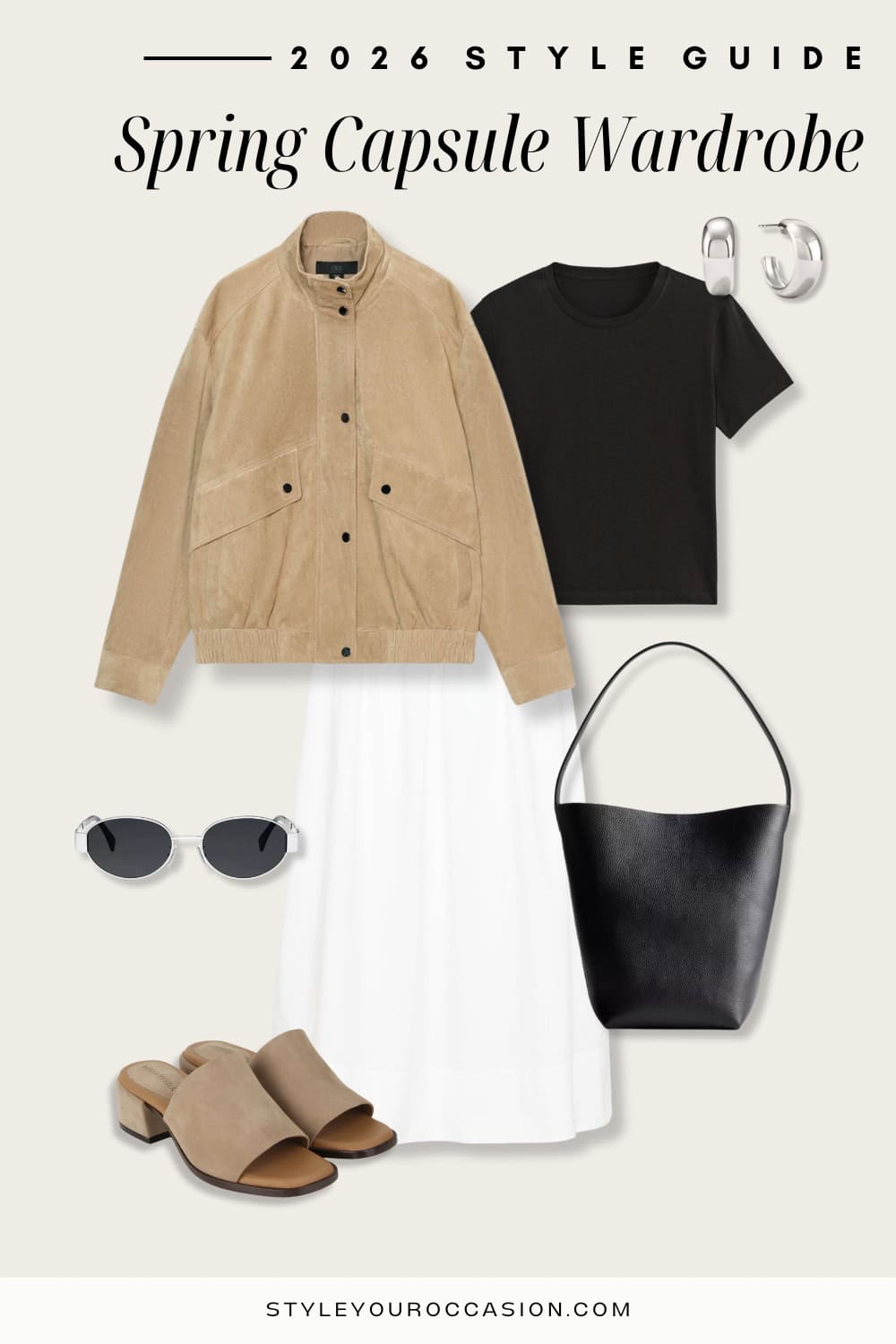 A suede jacket is one of those pieces that instantly elevates a spring capsule, and for spring 2026, suede is having a major moment. Lighter shades like light brown, soft beige, or even subtle pastels keep it feeling fresh and seasonally right, while still being endlessly versatile. Suede is the perfect lightweight layer for cooler spring days, adding texture and polish without feeling heavy, and works just as well over denim as it does styled with dresses or tailored trousers.