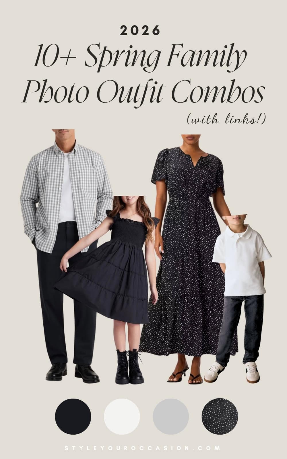 Looking for spring family outfit ideas that feel modern, bold, and unexpected? Reach for black dresses, boots, jeans, and more to create an edgy yet elegant aesthetic.