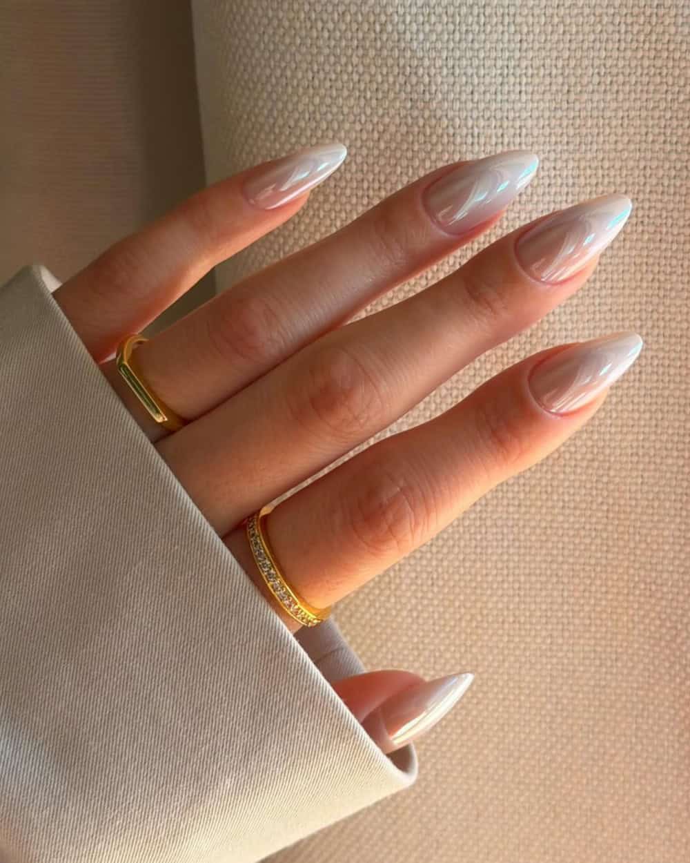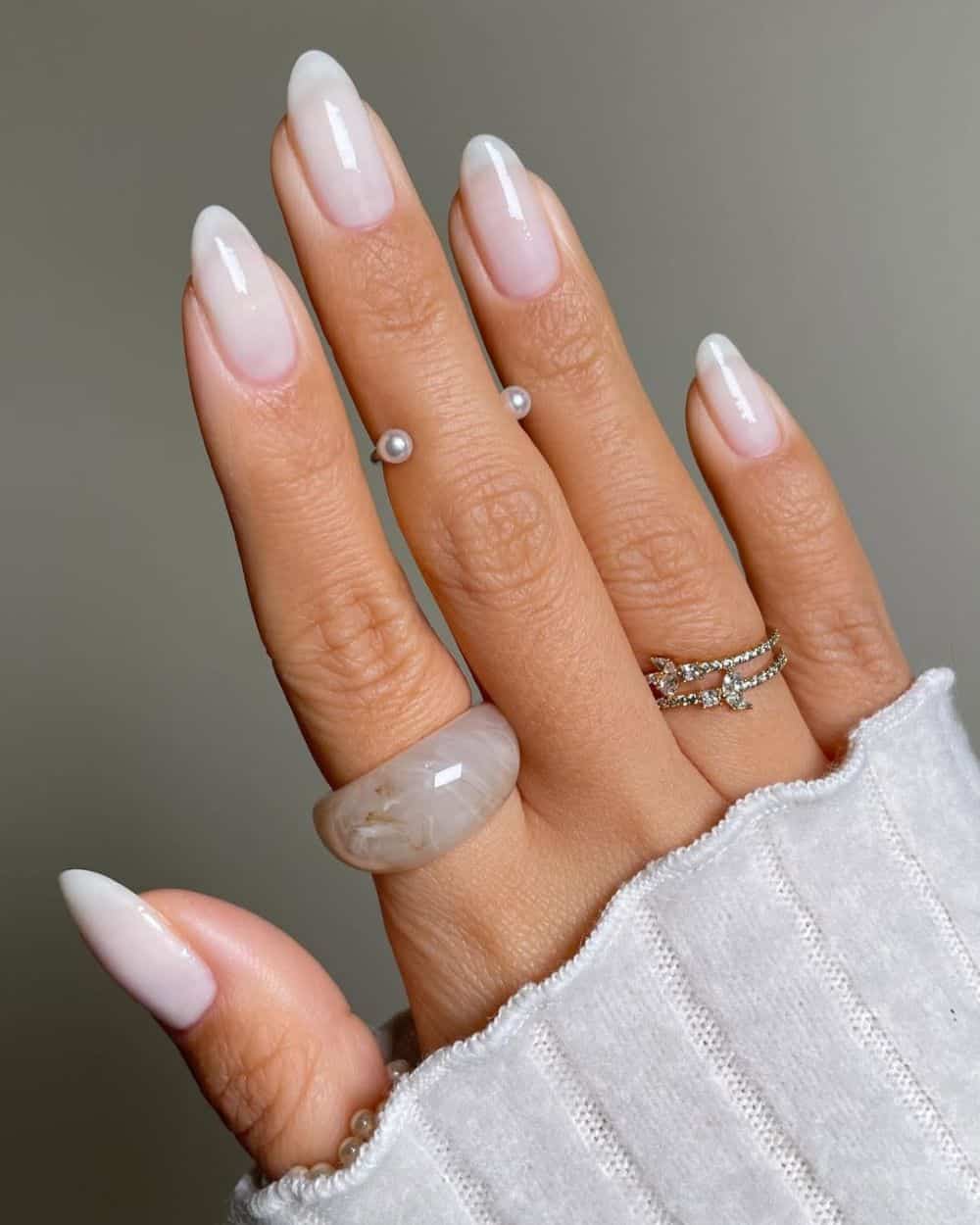 Last but not least, cloudy nails are a must-try shade for spring 2026. Not only was Cloud Dancer named color of the year by Pantone, but Glamour magazine also notes that “cloudy French nails […] are stepping into the spotlight.“