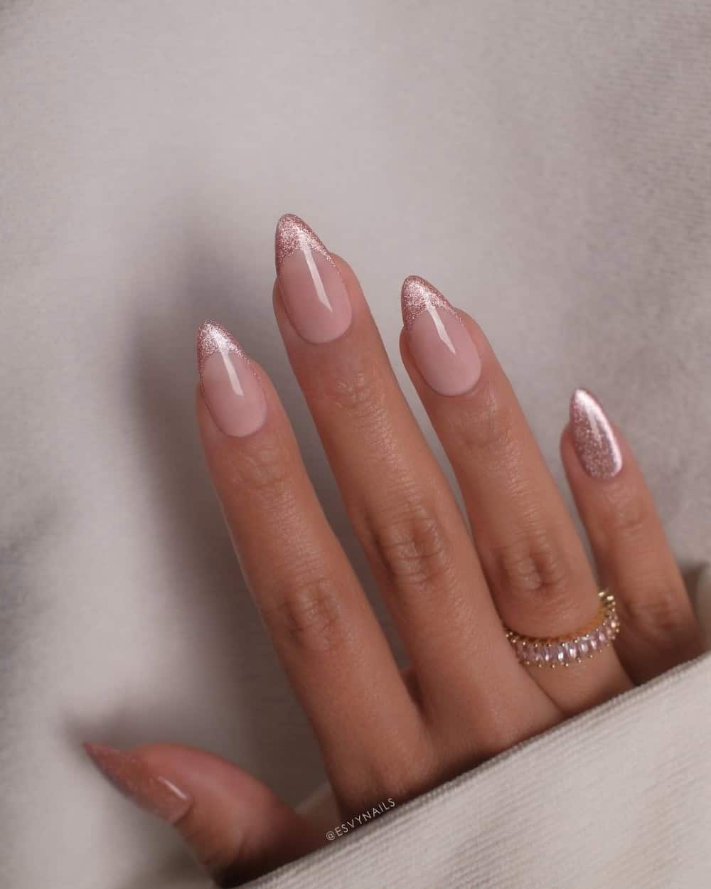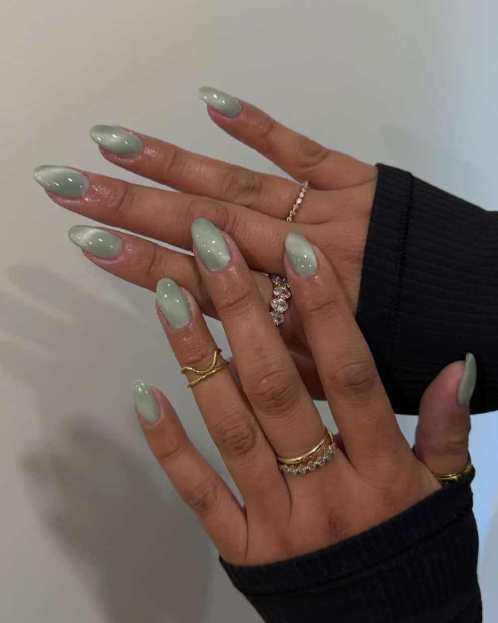 You can create a subtle shimmer with cat-eye, velvet textures, or ultra-fine glitter polish, and these designs are perfect to take you from the office to a night out. Courtney Marie (pictured in the middle above) has created a soft, sparkling design that’s perfect for a barely-there look, while @sansungnails and @esvynails offer up something a little brighter and more eye-catching.