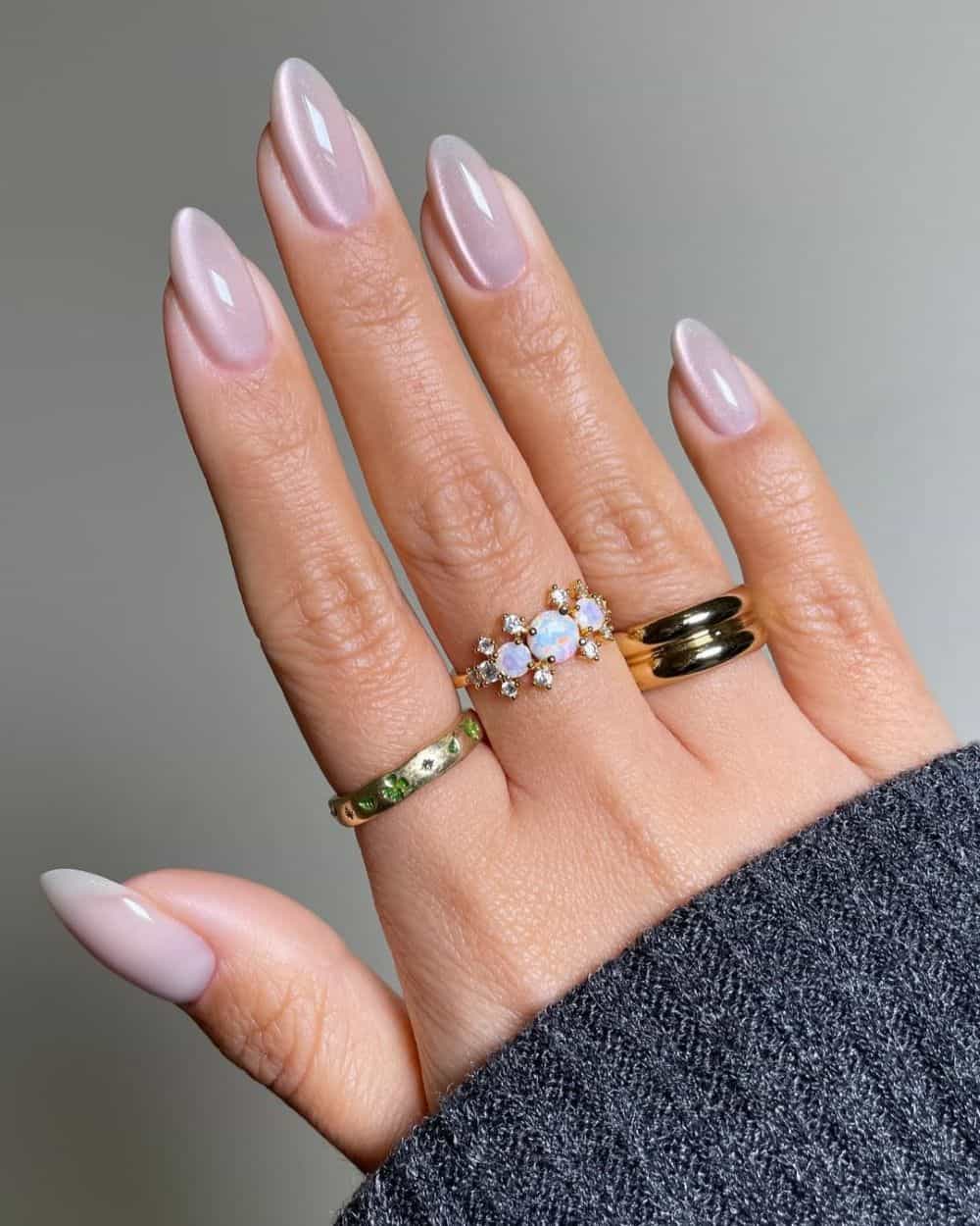 As far as nail designs, sheer peach is a trendy pick that still looks timeless, and you can never go wrong with a cat-eye or a chrome topcoat for a bold and alluring finish.