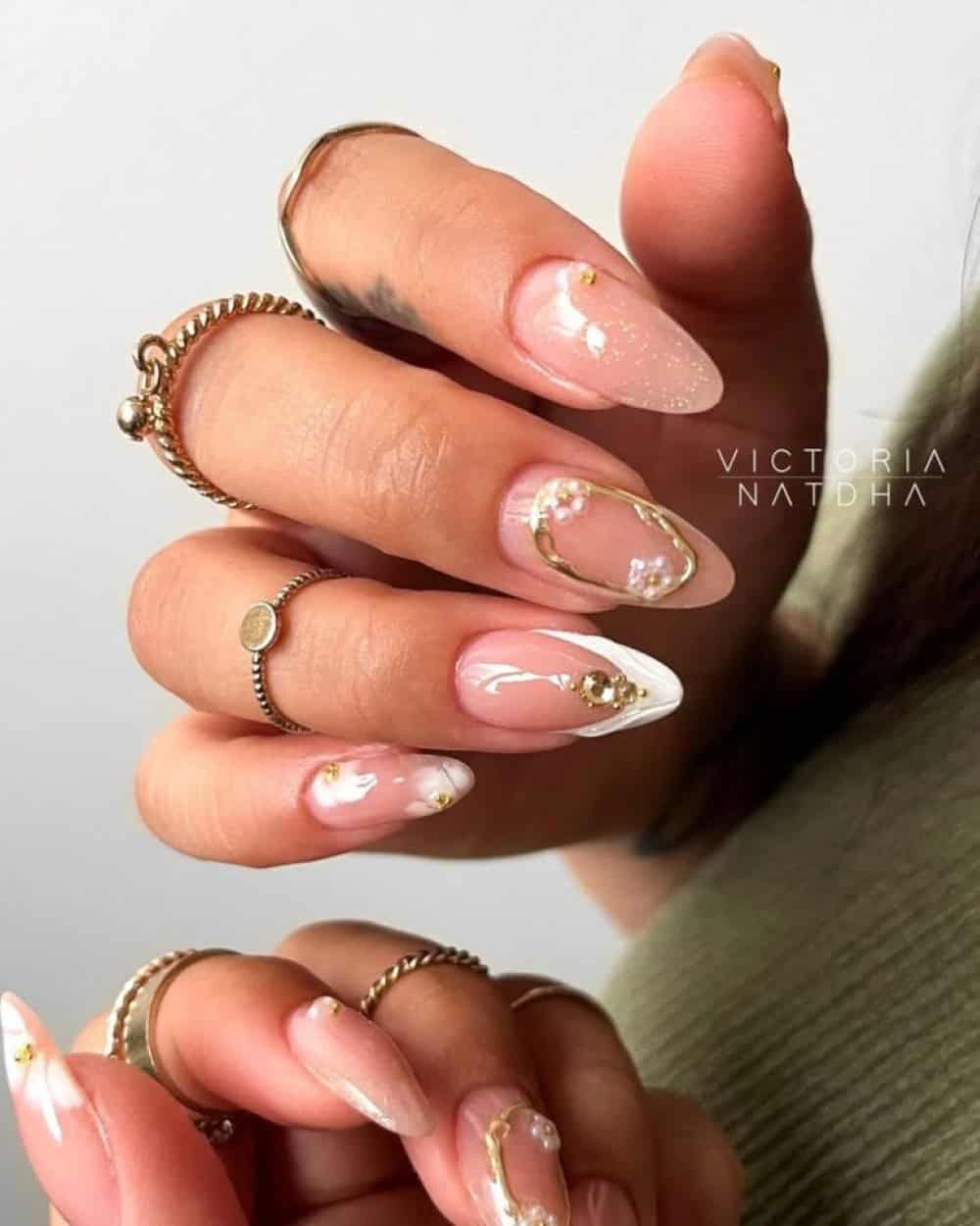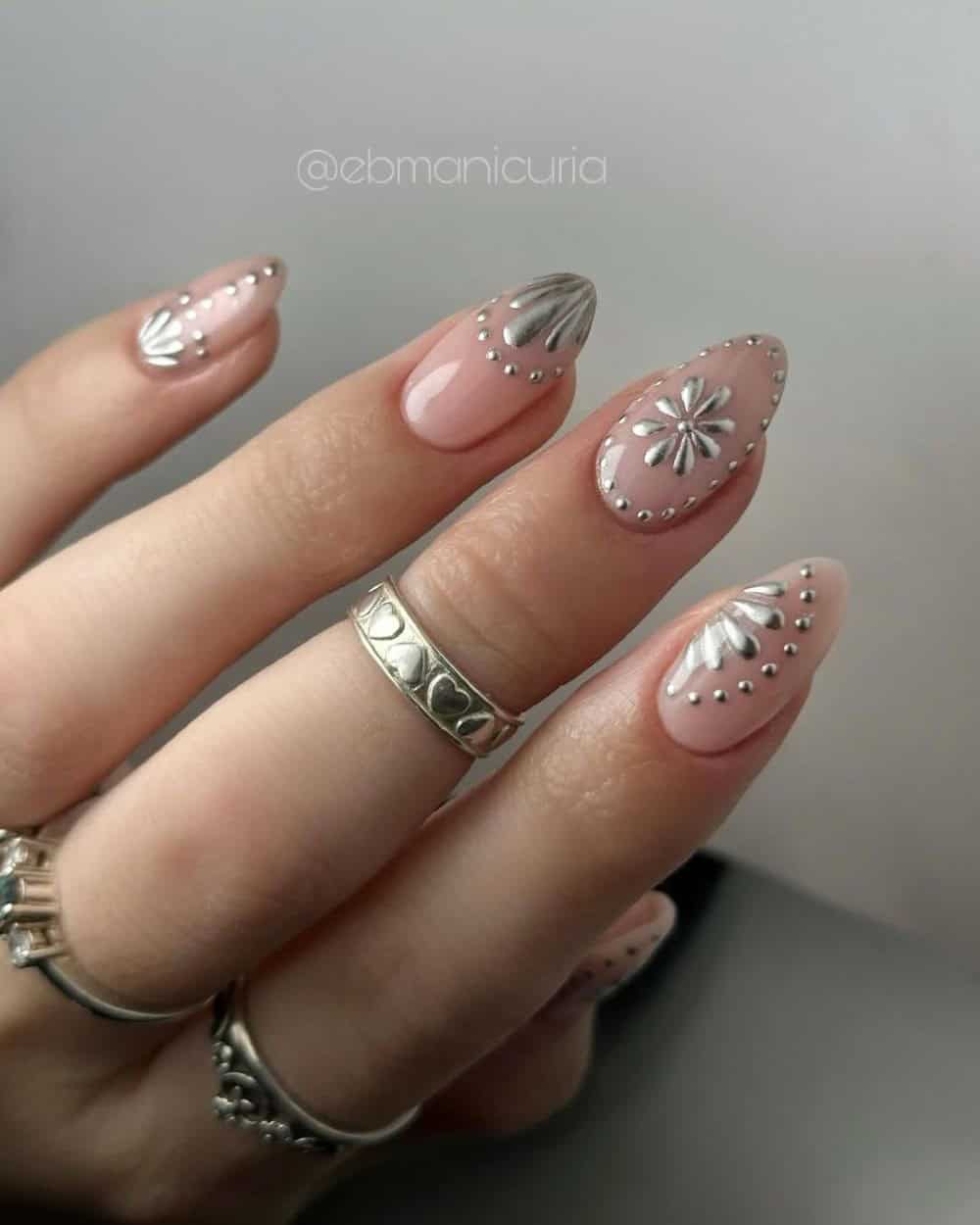 Metallics are another nail color trend to try this spring, and this one is really all about daring details and playful touches.