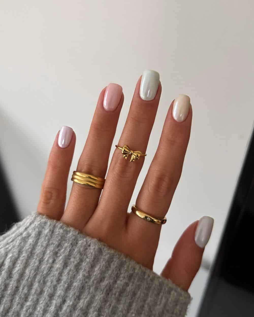 Whether you prefer a classy sheer nude, a soft and feminine pale pink, or a shimmery, bold pearly topcoat, a minimalistic nail design will help you look polished and put-together in 2026.