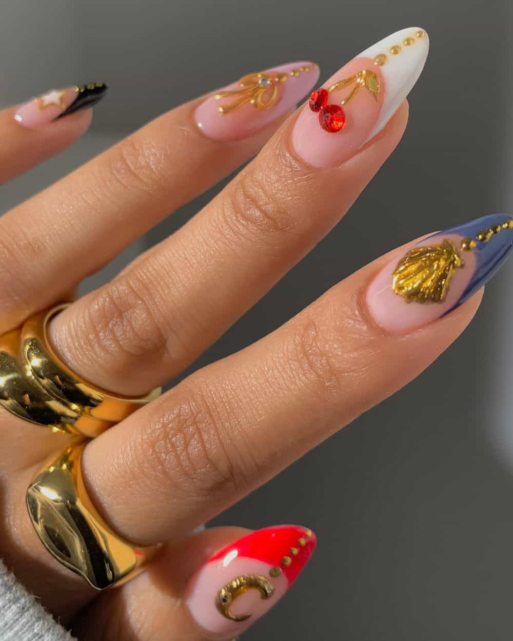 There’s so much potential to play and experiment here! Plus, you can easily make this nail trend work for any aesthetic since anything from nail piercings to pearls to a “daintily charmed set” (as per WhoWhatWear) will give you a bold, luxe look.
